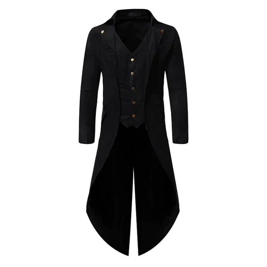 Der mittelalterliche gotische Frack, Cain, verkörpert die zeitlose Eleganz vergangener Epochen und verleiht jedem Anlass einen Hauch von historischem Charme. Mit seiner aufwendigen Gestaltung und hochwertigen Materialien ist dieser Frack ein beeindruckendes Kostümstück für verschiedene Veranstaltungen und Events. Cain ist die ideale Wahl für alle, die nach einem authentischen und dennoch stilvollen Outfit im mittelalterlichen Stil suchen.